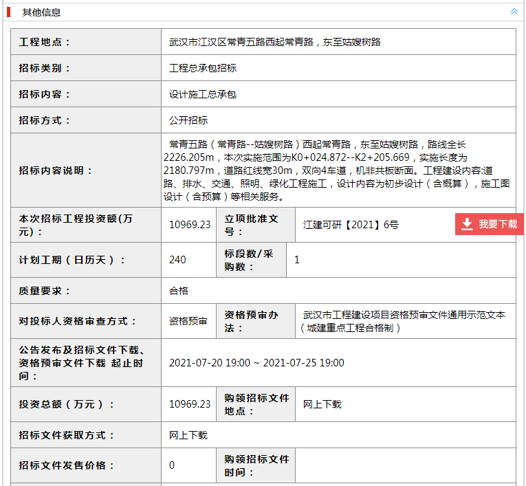總投資10969萬(wàn),武漢市常青五路(常青路-姑嫂樹(shù)路)提升工程 發(fā)布日期:2021年07月22日 瀏覽次數(shù):4868 關(guān)鍵字: 公司 總投資10969萬(wàn),湖北省武漢市,常青五路(常青路-姑嫂樹(shù)路)提升工程